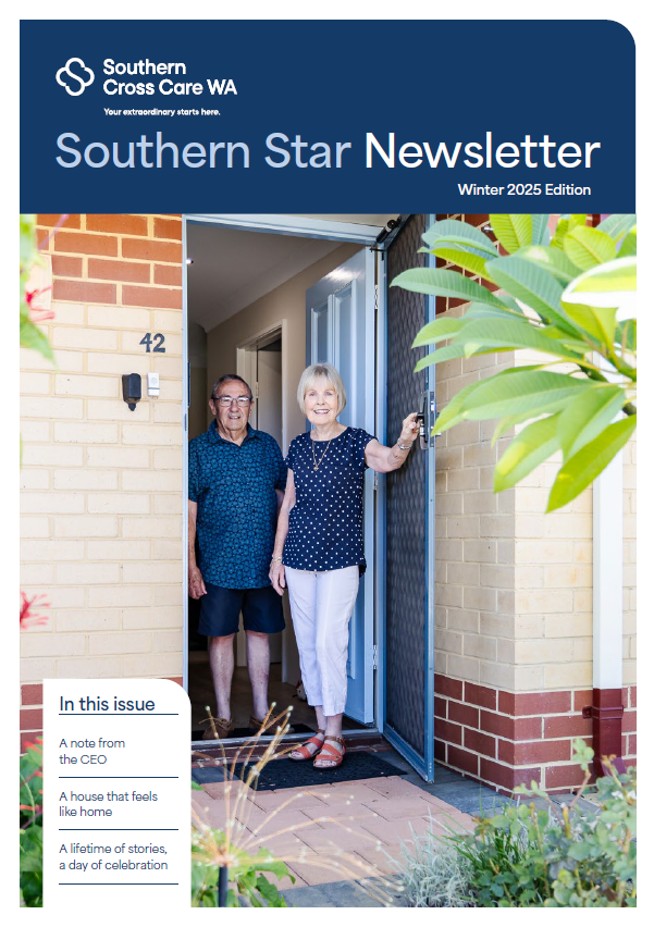 Our Southern Star magazine shines the spotlight on our Southern Cross Care WA community, sharing our latest news, initiatives, expert tips and achievements as well as feature stories about our residents, clients and staff.